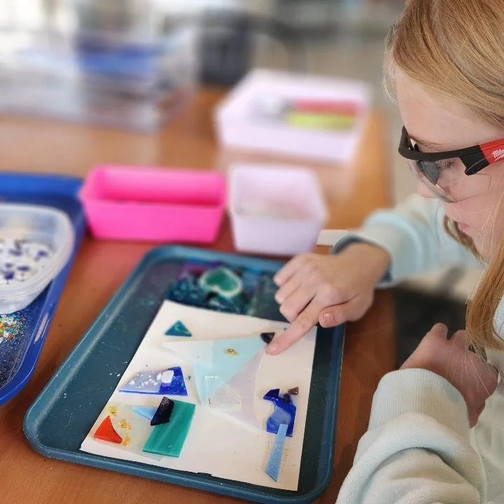 Includes a choice of one kid-safe, fun-tested art project (mosaics, kaleidoscopes, and glass fusing)